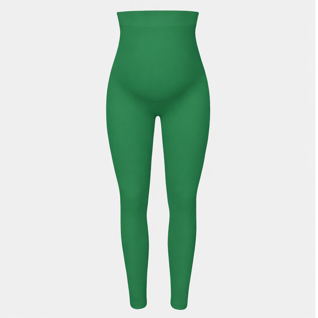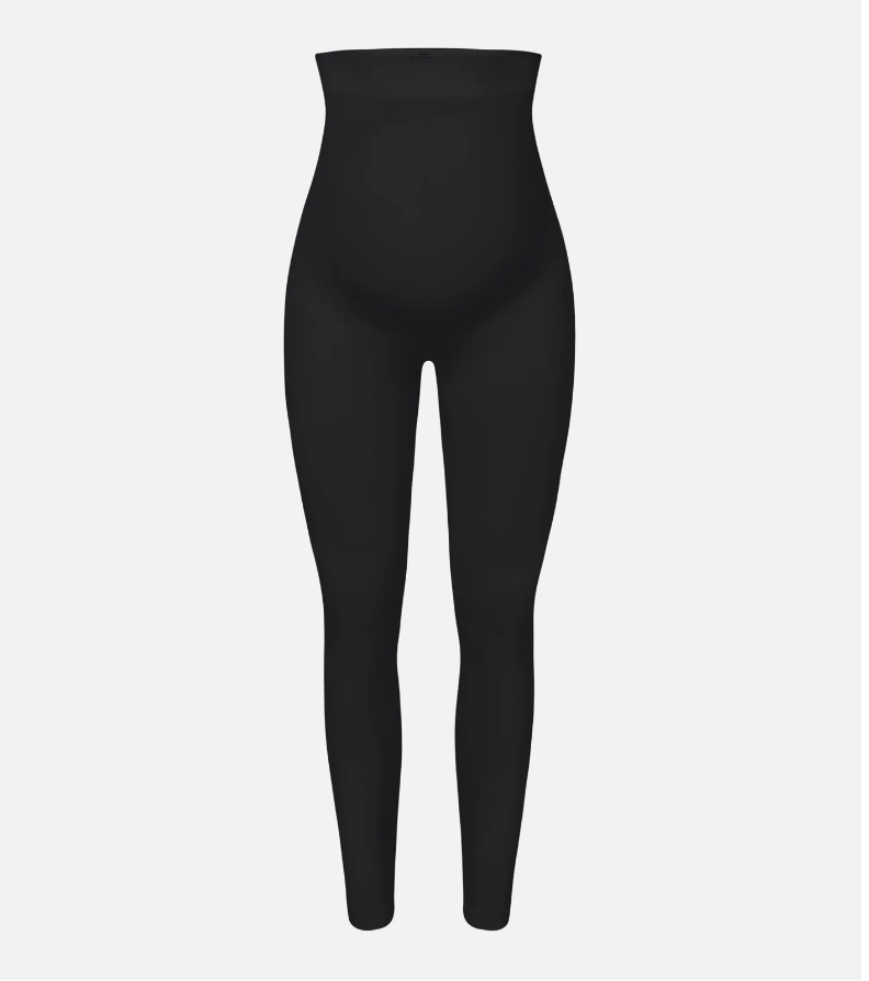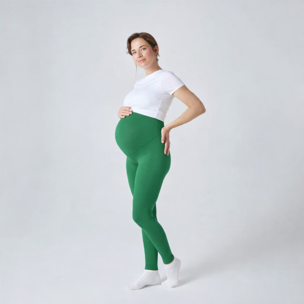 Leggingsen ger ett mjukt stöd runt mage och ländrygg samtidigt som de följer kroppens naturliga rörelser. Den höga, elastiska midjan fördelar vikten jämnt och växer med magen.